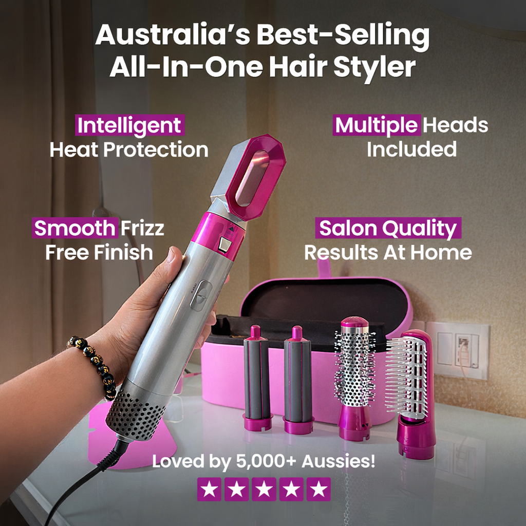 The Silky Glide Allure™ 5-in-1 Styler brings together five styling functions in one sleek tool, helping you dry, smooth, shape, curl, and volumise without cluttering your bathroom bench.